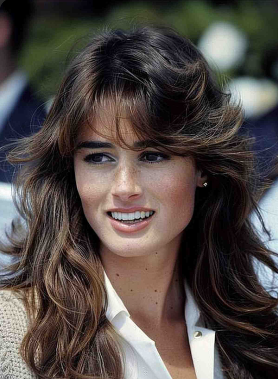 I’ve found that this look comes alive with a round brush and a good mousse. You roll the hair away from the face, hit it with some heat, and suddenly you’re living in a shampoo commercial. If you’re trying this yourself, don’t aim for perfection—feathered layers are supposed to look breezy. And honestly, the slightly messy versions often look even better. It’s one of those 80s trends that never really feels outdated to me.
