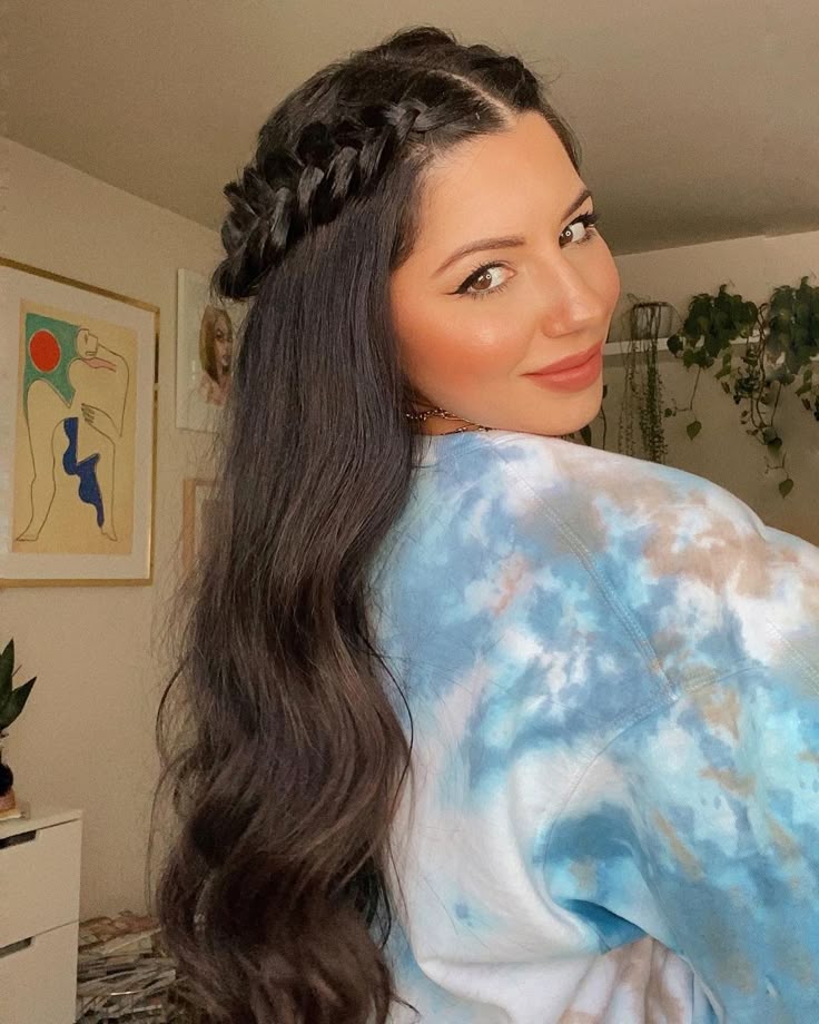 This style blends softness with that classic 90s attitude. The top section is braided and pinned into a crown, while the rest of the hair flows freely. I love how it feels romantic, playful, and confident all at once. It frames the face beautifully and highlights the eyes and cheekbones. This look works great for casual days, school, parties, and special events. It feels youthful and expressive without being too bold. The mix of structure and softness makes this braid style truly timeless and easy to love.