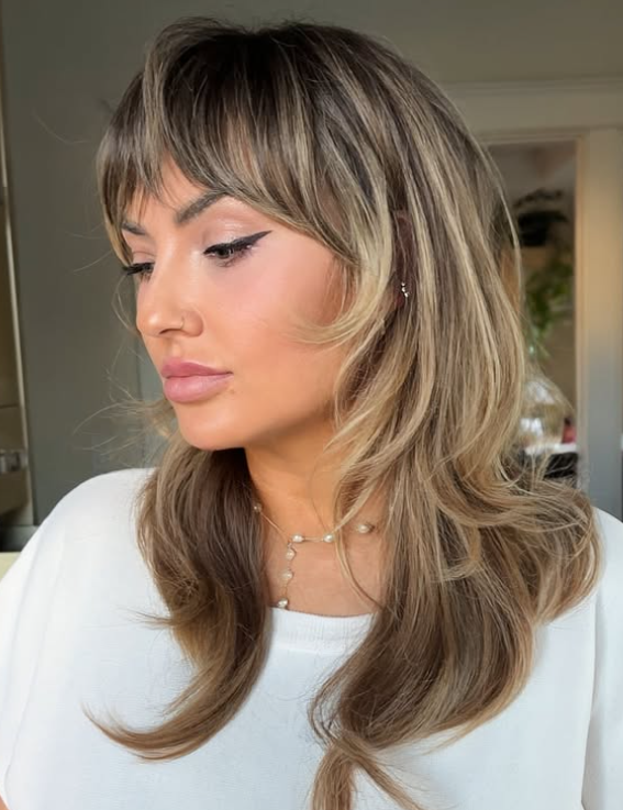 The Balayage Wolf Cut Ideas combines soft, natural hair coloring with a trendy, layered haircut for a bold yet effortless look. It’s a perfect mix of edgy style and low-maintenance beauty.