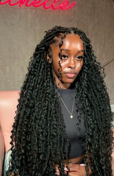 Long knotless braids have been my comfort style for years. They’re lightweight, versatile, and to be fair, they don’t pull on the scalp like traditional braids. For chubby faces, the length really helps because it pulls the eye downward, making the face look longer and slimmer.