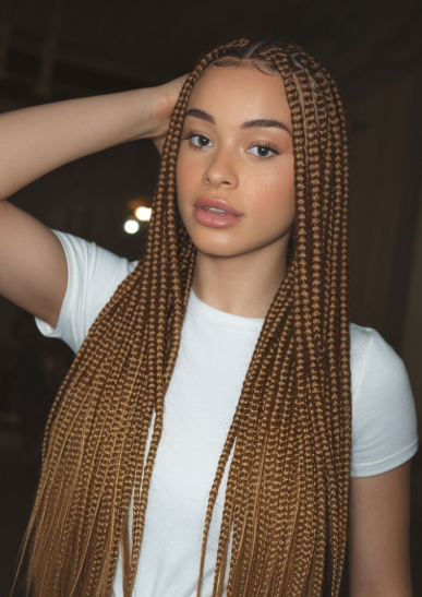 I usually choose medium-sized braids and keep the ends light. Styling them half-up or in loose pigtails works really well. Honestly, this length feels youthful and easy. It’s one of those styles that always looks good, even when you’re not trying too hard.