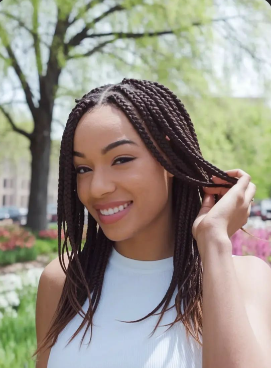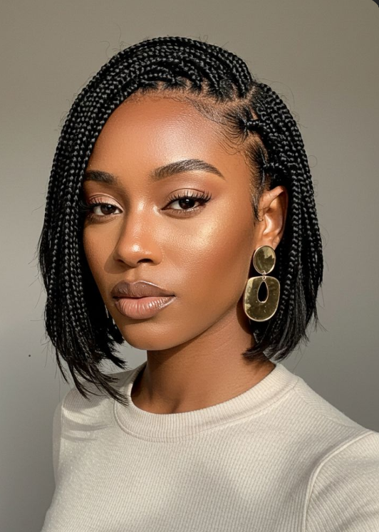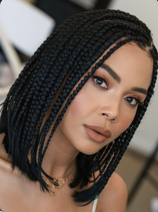 Bob-length box braids are such a mood for me because they’re playful and chic at the same time. I remember doing a bob-braid look for a model who wanted “something cute but bossy,” and when we finished, she literally screamed because it looked even better than she imagined. Short braids frame the face so well, especially when you angle the ends slightly for that sharp bob effect.