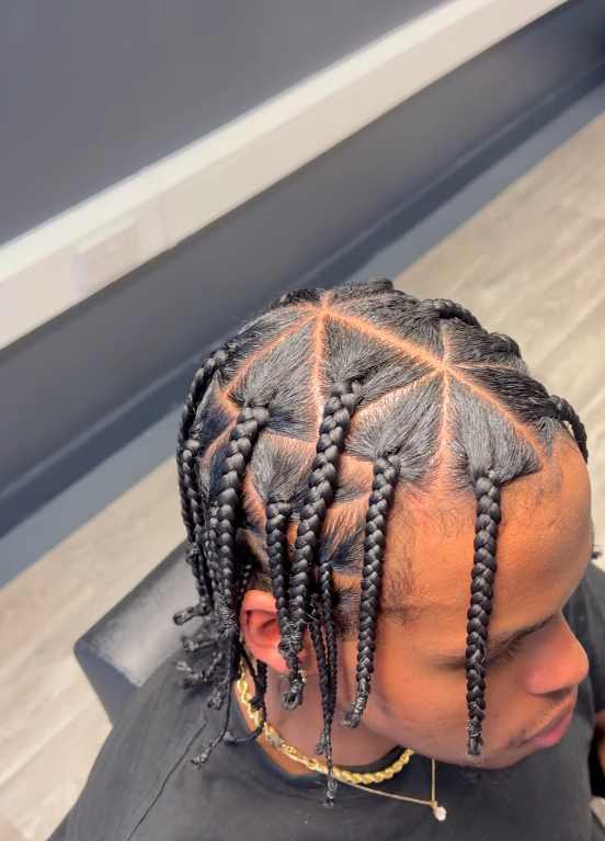 Triangle box braids always remind me of those days when I feel like being a bit extra creative. The parting itself becomes part of the style, which is honestly such a flex. I remember doing these for a summer shoot, and the model kept tilting her head just to show off the triangles because they looked so unique. They take a little more patience, but the final look is so worth it.