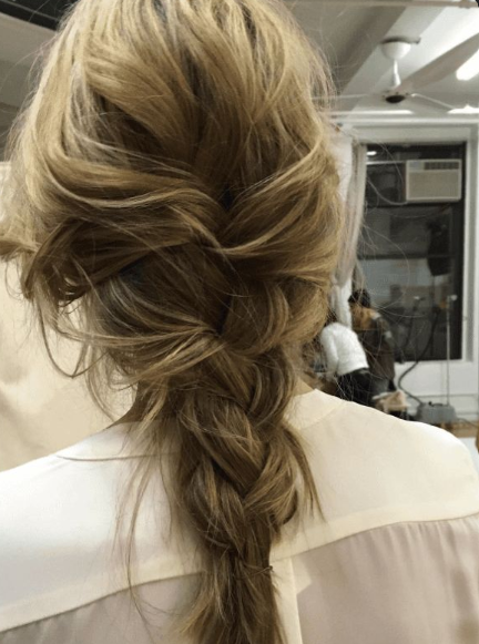 When I style this, I part the hair slightly off-center. Then I bring all the hair over one shoulder and start a loose fishtail braid. The key is keeping it relaxed, not tight and tiny. After securing it, I gently pull apart the braid to make it fuller. I sometimes leave a few soft strands near the cheekbones — it softens everything and adds that effortless vibe I personally adore.