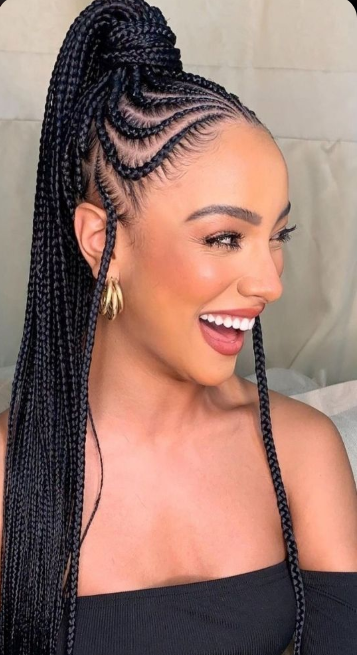 I’ve found that this look works best when you keep the parts bold and intentional. Too many thin stitches can feel messy. When everything flows neatly into the ponytail, it feels modern and powerful. In my opinion, this style is perfect for bold personalities who like structure and definition in their hair.