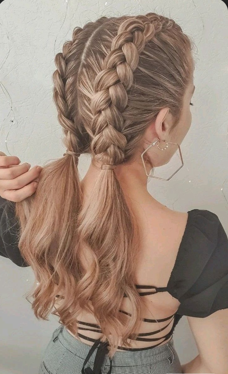 These always give me that sporty, playful vibe, and honestly, I love doing them on my models whenever we’re shooting school looks. There’s something about Dutch braids in pigtail form that just screams “fun but still neat.” I’ve found that parting the hair cleanly down the middle makes everything else easier, even though I sometimes fix the parting twice because I’m picky about symmetry. Doing the braids themselves is just the classic Dutch technique—strands go under, not over. To be fair, this style can look super tight if you pull too hard, so I usually keep it a bit softer unless the model wants that bold boxer-braid effect. And let me tell you, these pigtails stay put all day, which makes them perfect for school girls who run around nonstop.