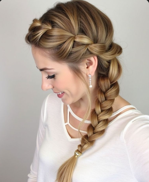 Honestly, this is the braid I reach for when I’m rushing around backstage with my models before a school-themed shoot. It’s the kind of style that looks like you put in effort, even when you totally didn’t. I’ve found that once you get the rhythm of crossing the strands—right over middle, left over middle—it feels almost calming, like your fingers just know what to do. To be fair, I used to underestimate it, thinking it was too basic, but every time I do it on a model, the final look surprises me. And the best part? You really don’t need anything fancy to make it work. Just brush the hair, separate it into three equal pieces, and keep a gentle tension as you braid down. In my opinion, it looks extra cute when you leave a bit of softness around the face. Even my shy models end up smiling when they see how effortlessly pretty it looks.