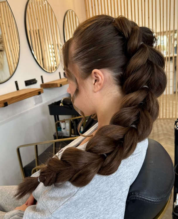 Braids, such as French braids or fishtail braids, can work wonders on thin hair. They add both texture and dimension, making your hair look thicker while still maintaining a chic, intricate appearance perfect for a bridal look.