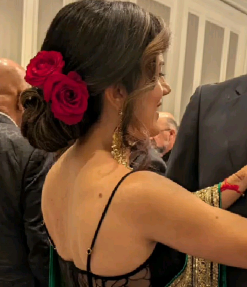 To be fair, the messy bun with roses is not really “messy.” It’s controlled chaos, and I love that about it. I remember one bride who panicked because a few strands fell out, but honestly, that softness made the look even more romantic. Roses add instant drama, especially deep red or blush tones against dark hair.