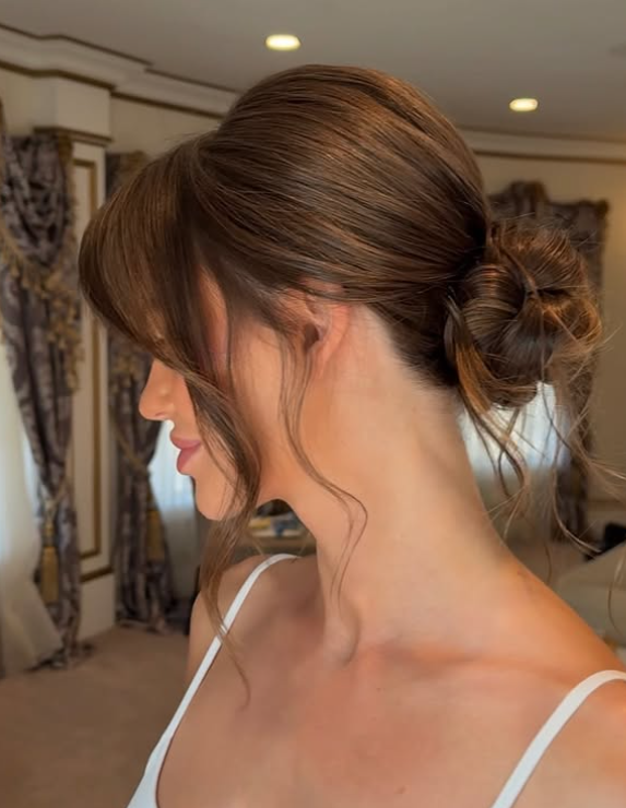 There’s something so timeless about a classic low bun—it’s honestly one of my go-to styles for brides who want that quiet luxury kind of vibe. I still remember styling this look on one of my first ever bridal clients. Her dress was minimalist, her jewelry subtle, and she said, “I just want to look like me, but better.” That’s when I knew the low bun was the answer. It frames the neck beautifully and doesn’t fight for attention.