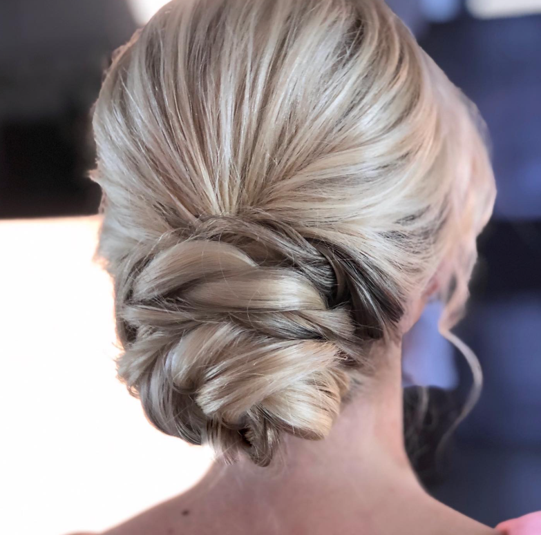 Twists add such a cool texture to a basic bun—it’s like giving it a little edge. I did this style once on a bride who didn’t want anything too “poofy” or “princessy” (her words), but still wanted something bridal. We did two big twists on each side, pulled them back, and created a twisted knot at the nape. She looked effortlessly modern.