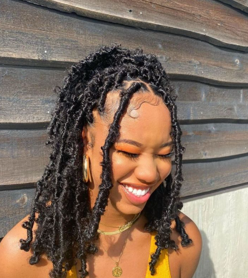 Shoulder-length butterfly locs are that sweet middle ground I keep coming back to. They’re long enough to style but short enough to stay practical, which, in my opinion, makes them ideal for everyday wear. I tried this length during a really busy phase of my life, and it just worked. No constant pulling, no heavy feeling—just easy, cute hair that still felt intentional.