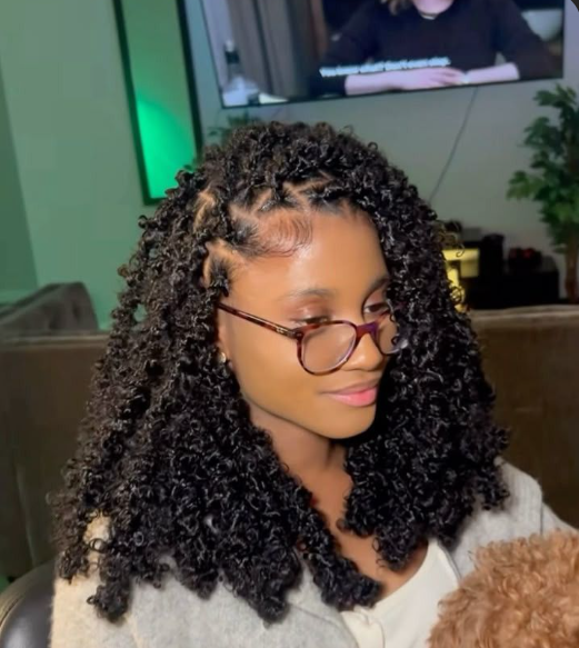To achieve this, I usually leave the ends unwrapped and add curly hair extensions for that flowy finish. I’ve found that sealing the loc slightly above the curl helps keep it secure without flattening the texture. You do need to care for the curls—light mousse and finger detangling go a long way. Honestly, if you like romantic, feminine styles, this version of butterfly locs is hard to beat.
