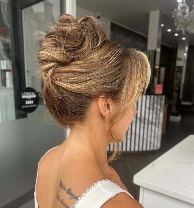 The twist itself doesn’t need to be too tight—I prefer it a little relaxed, with texture. The side-swept bangs soften the front so it doesn’t feel too formal or stiff. I always anchor the twist with vertical pins and finish with a shine spray. It’s classy, timeless, and turns heads. Every. Single. Time.