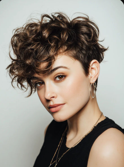 This one sits right between playful and elegant. Honestly, I’ve done this hybrid cut on models who wanted something short but not “too short,” and it works every single time. The extra length at the back gives 3C curls room to stretch while the pixie shape keeps everything fresh. I’ve found that diffusing really brings this style to life. When the curls expand and settle, there’s this soft roundness that feels so chic without being fussy. If you’re thinking of trying it, keep the layers light so the shape doesn’t collapse. In my opinion, this is one of the most versatile curly cuts because it grows out so gracefully. Every few weeks, it transforms—but in a good way.