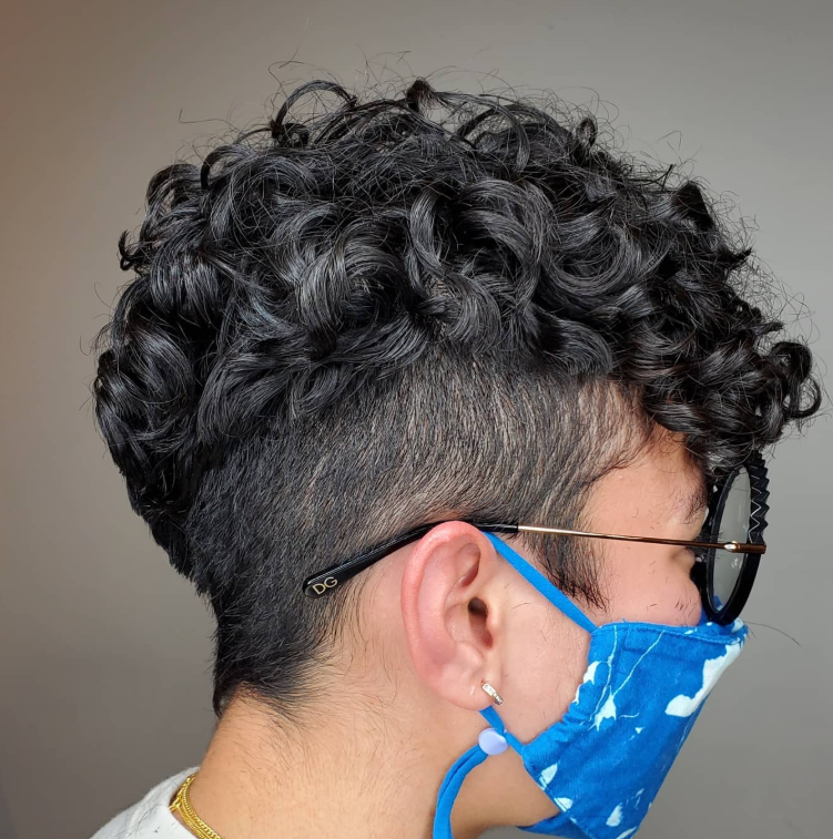 For the bold and daring, a curly mohawk pixie features shaved or closely trimmed sides with curls running down the center. It adds height and structure, flattering round facial features.