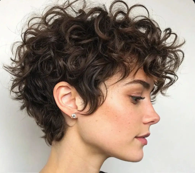This one is for people who genuinely don’t want to try too hard. A tousled curly pixie has that “I woke up like this” vibe that honestly suits thin hair so well. I’ve worn this style during busy phases of my life, and it always felt forgiving. Messy curls make thin hair look fuller, period.