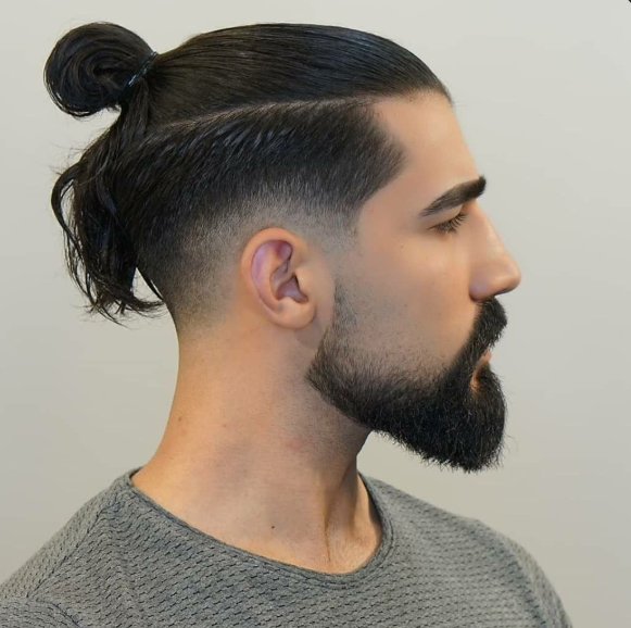 The man bun with a beard is one of those styles people have strong opinions about, but I still love it. I wore this during a long-hair phase, and honestly, it was freeing. The bun keeps things practical, while the beard adds character. In my experience, the key is not pulling the bun too tight. A relaxed bun looks cooler and doesn’t stress your hairline. For upkeep, I focus on hair health. Regular conditioning and occasional trims keep it looking intentional. I usually pair it with a fuller beard, but I keep the edges neat. In my opinion, the beard shouldn’t be overly sculpted with this look. Let it feel natural. This style works best when you’re comfortable with yourself. It’s casual, confident, and surprisingly versatile.