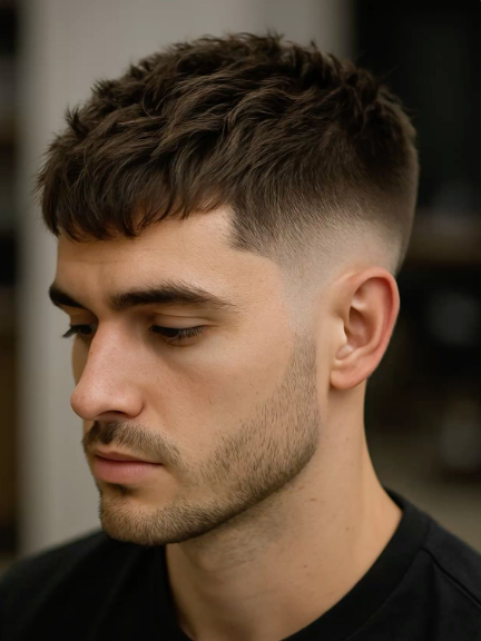 The crew cut with a faded beard is proof that short hair doesn’t mean boring. I love this look for its simplicity and sharpness. There was a time when I wanted zero fuss, and this style saved me. The clean top paired with a gradual beard fade looks incredibly polished. I always tell people that the fade into the beard is the real star here, not the haircut itself. Maintenance is surprisingly important, though. I’ve found that visiting the barber every 3–4 weeks keeps it looking intentional instead of grown-out. At home, there’s almost no styling needed for the hair. For the beard, I keep the fade clean by trimming the lower part more often. To be fair, this style suits men who like clean lines and structure. It’s practical, masculine, and perfect if you don’t want to think too much in the morning.