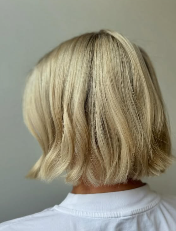 A blunt cut at ear length creates a solid, thick edge that instantly makes fine hair appear denser. It offers a clean, sleek look that’s easy to style and maintain.