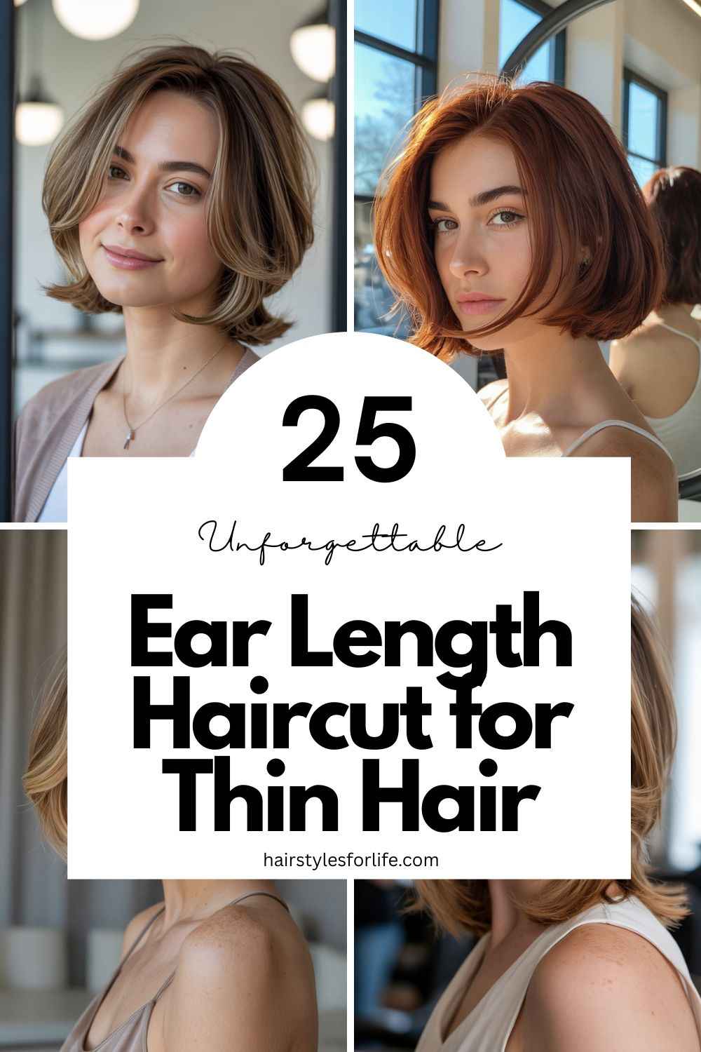 An ear-length haircut is a stylish and practical choice for thin hair, adding volume and structure effortlessly. It frames the face beautifully while giving fine strands a fuller appearance.