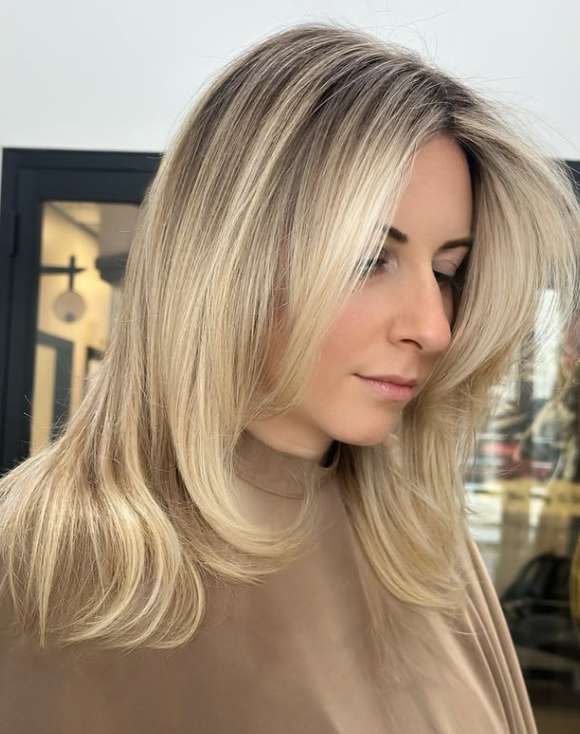 Golden Blonde Waves with Shadow Roots