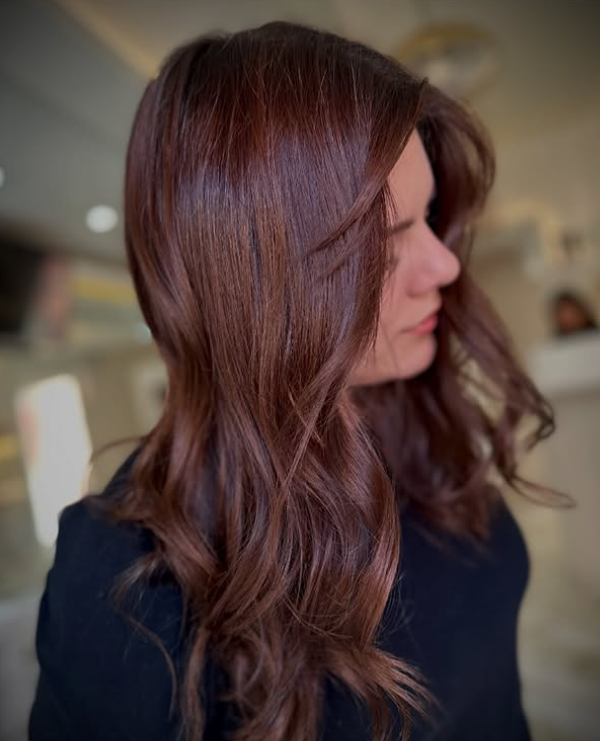 Cinnamon red brings a spicy, coppery warmth that flatters curls with its vibrant tone. The reddish hue brightens the face and gives curls a standout autumn look that feels cozy and chic.