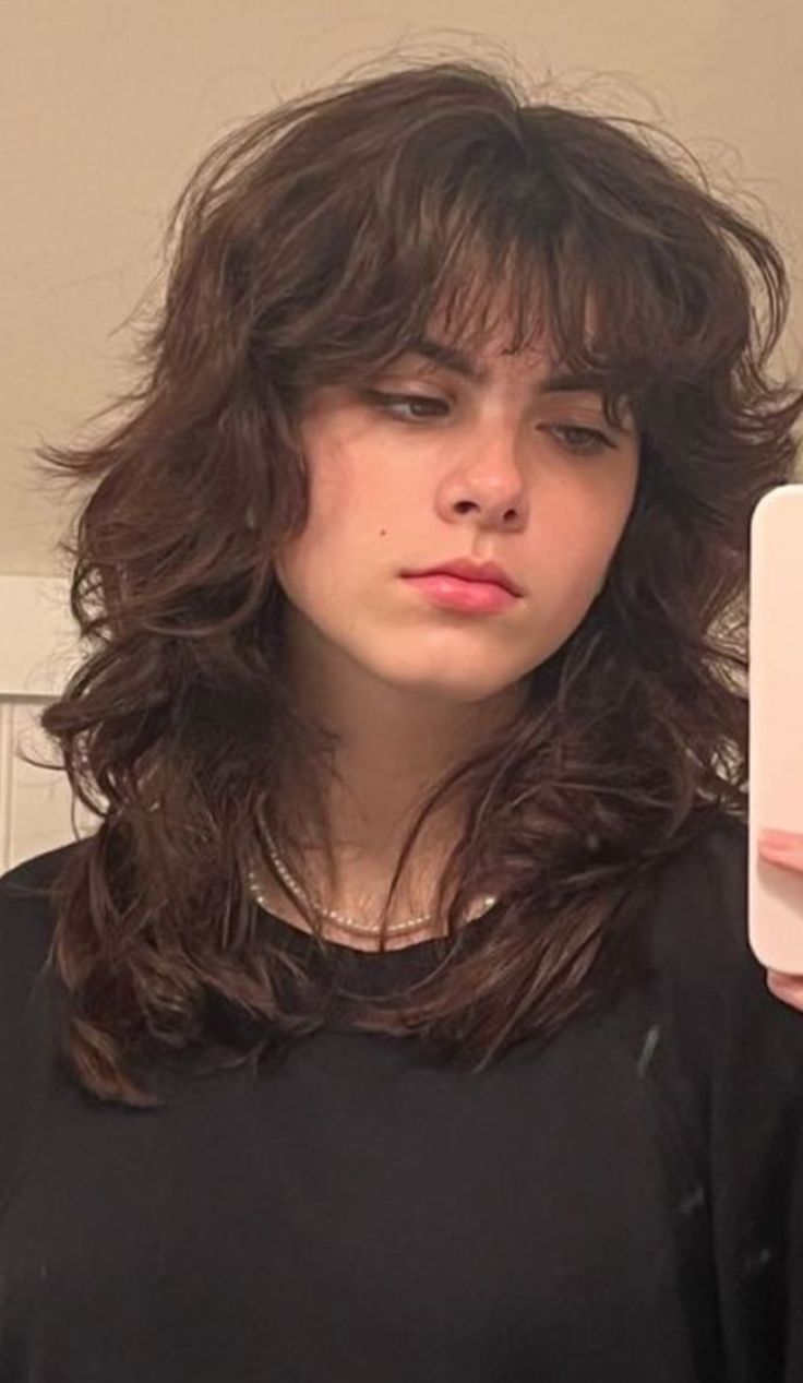 The wolf cut screams grunge, but for round faces I keep the front pieces longer and feathered. That length breaks up fullness and draws eyes downward instead of outward. I ask for wispy ends rather than chunky ones, so everything feels light and rebellious instead of heavy. Styling stays messy—rough blow-dry, finger-comb, done. I also love flipping the ends slightly outward for a careless finish. This haircut works especially well when hair has natural wave, but straight strands can fake it with texture spray. Overall, it delivers rock-band energy without overwhelming softer facial features.