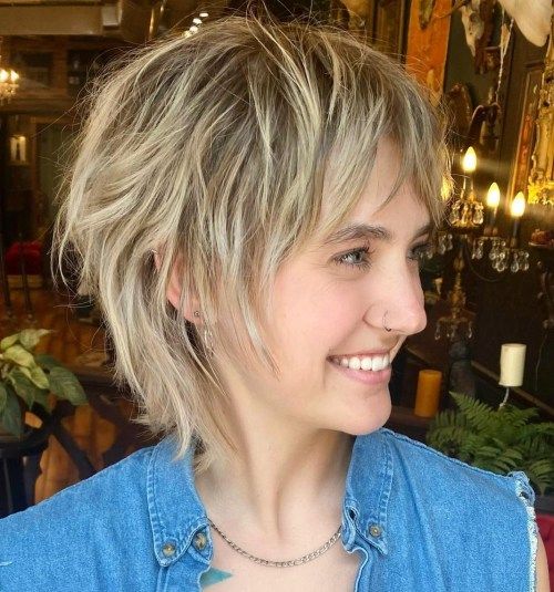 Short hair still works for round faces if volume stays on top and length hugs the sides. My favorite version is a soft grunge pixie with a longer crown and messy fringe. The height elongates everything, while textured pieces around ears keep it edgy instead of cute. I rake in styling paste and rough it up with my hands—no neatness allowed. It looks amazing with bleached ends or shadow roots too. What surprises me is how versatile it feels: spike it one day, sweep bangs sideways the next, always rebellious in different ways.