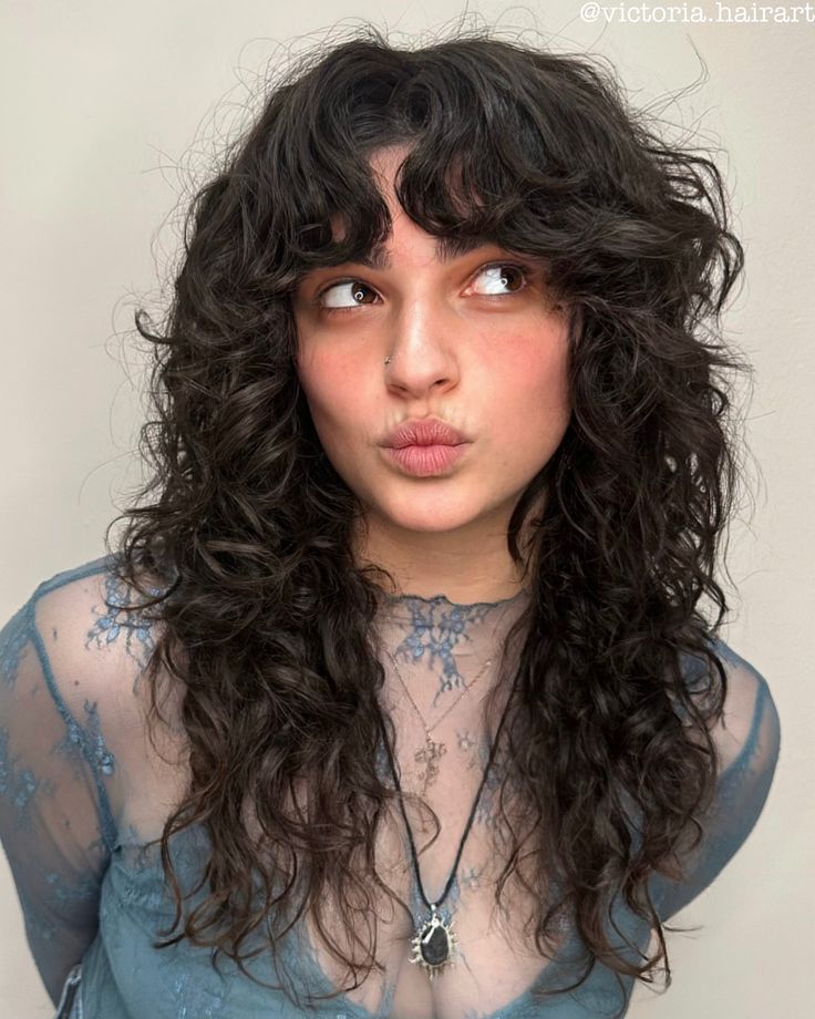 A layered mullet with soft waves blends classic grunge attitude with modern, wearable texture. Thick hair naturally supports the dramatic shape, giving volume at the crown and a flowing length at the back. The layers make the waves fall in loose, uneven patterns that enhance the wild, expressive mood. With minimal styling, the hair still looks full of character because the cut does most of the work. You can add subtle highlights or darker roots to make the texture stand out even more. This hairstyle brings edge, softness, and rebellion together in a look that feels bold yet effortless.