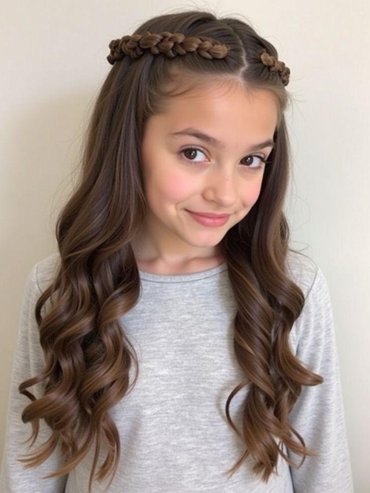 This style adds detail without much effort. I love twisting small sections at the front and pinning them back, then letting the rest of the curls stay loose. It keeps hair tidy around the face while showing off volume and texture. This look feels sweet, neat, and perfect for school or special days.