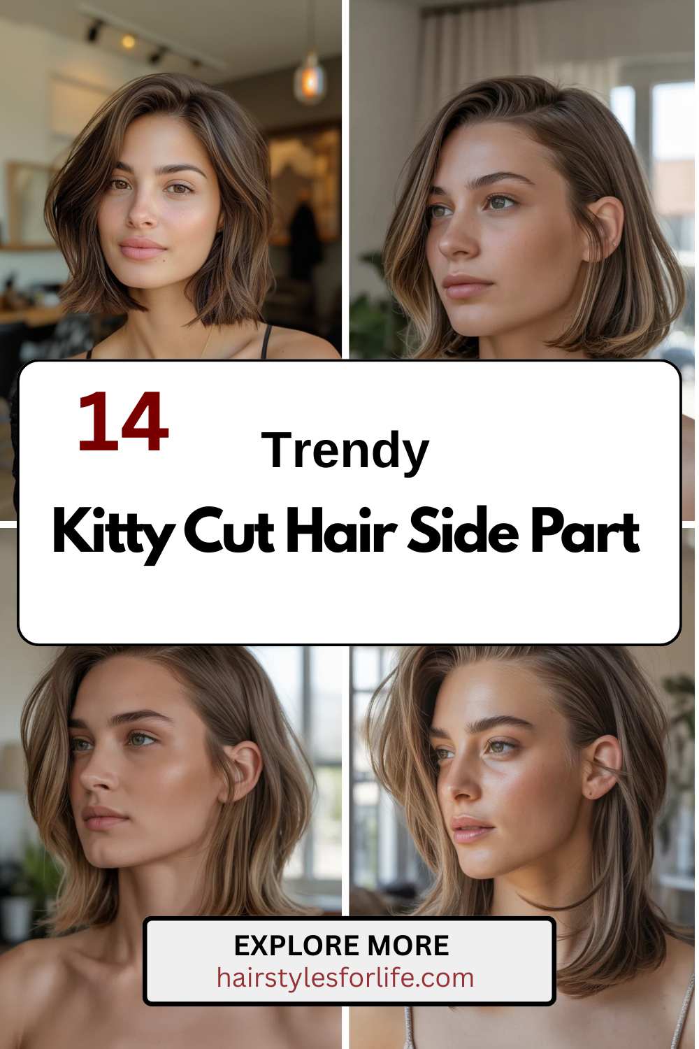 Kitty cut hairstyles with a side part have really grown on me because they feel soft, stylish, and perfectly balanced between playful and polished. I love how the gentle layers of a kitty cut create movement and shape, while the side part instantly adds elegance and frames the face in such a flattering way. Every time I see this combo, it feels fresh without trying too hard, which is exactly what I look for in everyday hairstyles. The cut works beautifully on straight, wavy, or lightly textured hair, making it easy to adapt for different vibes and moods. What makes this look special to me is how effortlessly it elevates your whole appearance. You can keep it sleek for something refined or let it fall naturally for a relaxed finish. Honestly, to be fair, a side-parted kitty cut is one of those styles that suits so many face shapes. These ideas are perfect if you want something modern, versatile, and full of personality while still feeling light, flattering, and easy to maintain.