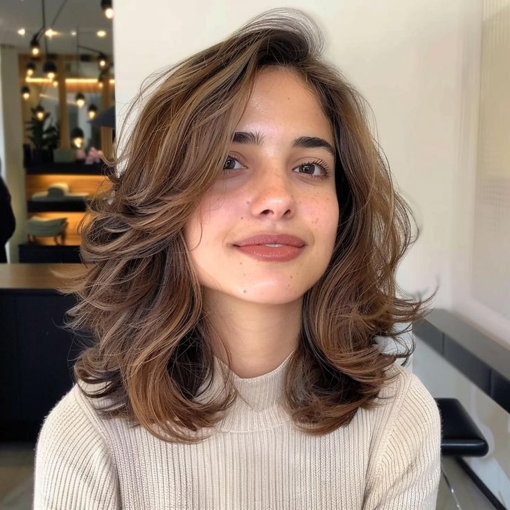 This version focuses on volume and movement created through a soft blowout finish. I love how the side part lifts the roots while the layered ends flip and curve naturally. It gives hair that salon-fresh look even on regular days. This style works beautifully for medium to thick hair and holds shape well with light product. The airy finish keeps everything light and glamorous without stiffness. This cut feels polished, bouncy, and perfect for anyone who loves a smooth, voluminous hairstyle with everyday wearability.