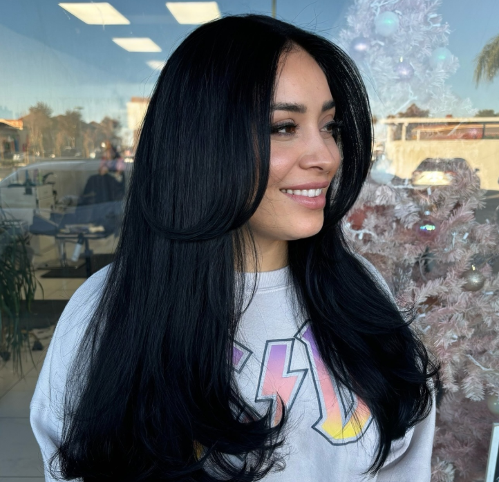V-cut layers create a sharp, cascading effect with longer pieces in the back and shorter layers along the sides. This style adds movement and is ideal for those who love dramatic, eye-catching hairstyles.