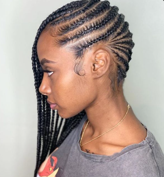Small, neat lemonade braids are for the people who love detail—because yes, this style takes patience. I remember the first time I tried this, I underestimated how long I’d be sitting there, but once it was done, I was obsessed. The finished look is so clean and refined that it almost feels custom-made for your head. To be fair, this style isn’t for the impatient, but if you love long-lasting braids, it’s totally worth it.