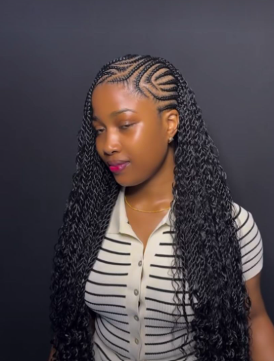 Adding curls to lemonade braids is one of my favorite ways to soften the look. The first time I tried it, I wasn’t sure how it would turn out, but I ended up loving how feminine and playful it felt. The curls add movement, and honestly, they make the braids look less strict and more romantic. I especially love this style for vacations or special events.