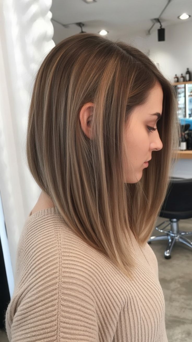 This straight long bob focuses on smoothness and shine. The sleek finish makes the hair look healthy, strong, and polished. I love how this style feels powerful and confident while staying simple. It works perfectly for professional settings and special occasions. This haircut always looks neat and elegant with minimal styling. The glossy finish adds that extra touch of beauty and sophistication.