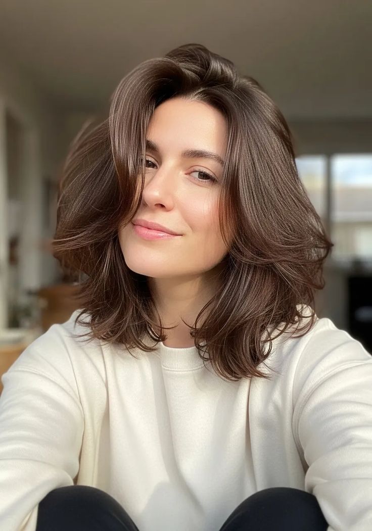 The feathered layers add softness and flow to the long bob. I love how this style feels gentle and graceful. It frames the face beautifully and creates a flattering shape. This look works wonderfully for everyday wear and feels both modern and timeless. The light layers add movement without losing the clean structure of the bob. It is a perfect choice for anyone who loves natural, soft hairstyles.