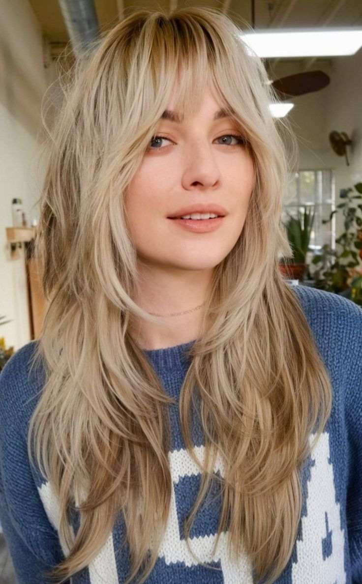 Long Wolf Cut with Airy Feathered Bangs