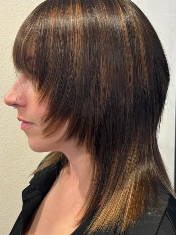 Light, feathered ends create softness and movement in this style. It gives the hair a flowy feel while keeping the wild, textured essence of the wolf cut.