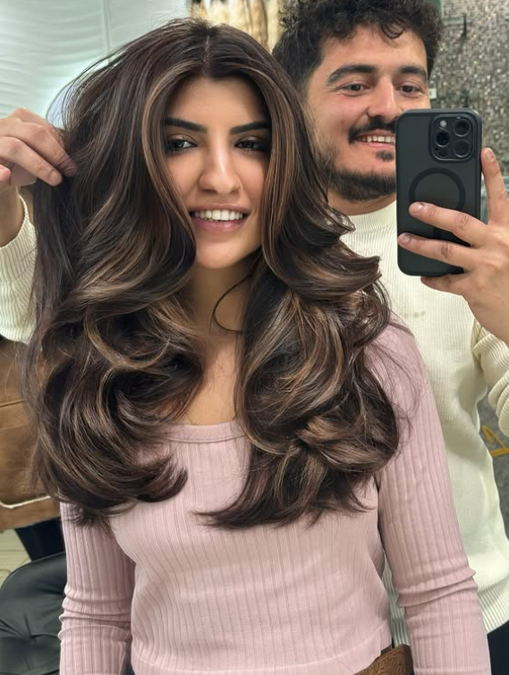 It’s a hairstyle where the hair falls between the shoulders and chest, with layers cut at different lengths to add volume, shape, and movement.