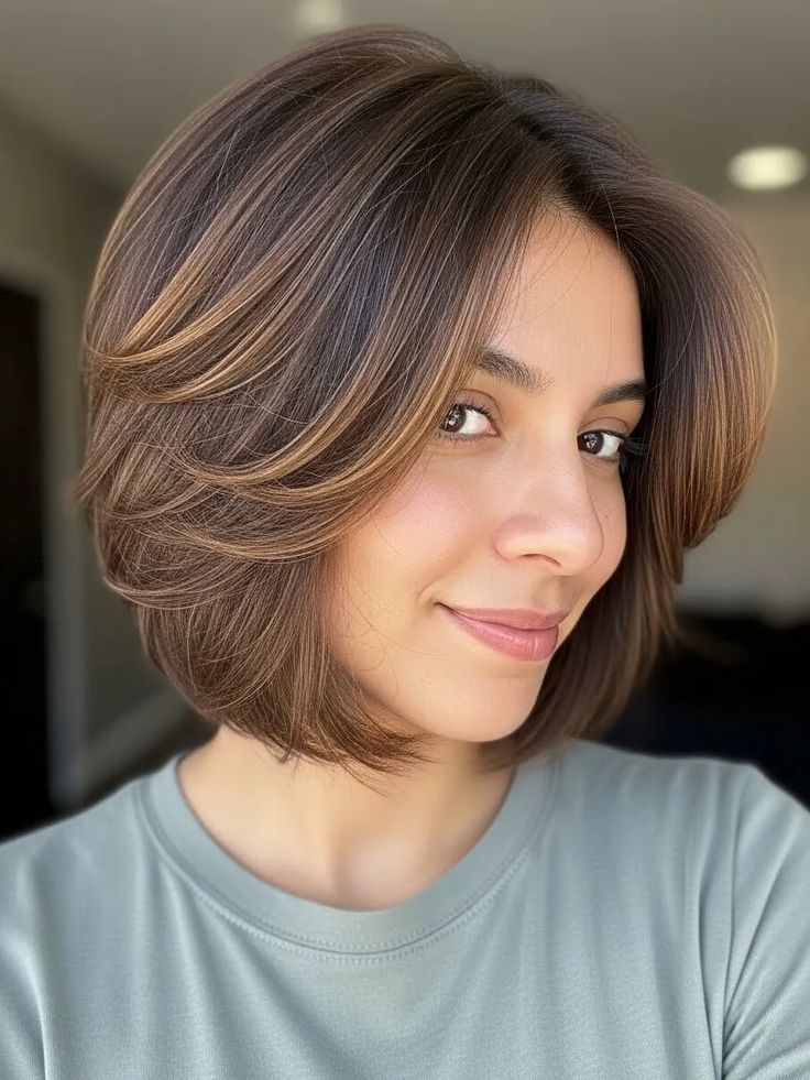 This bob gets instant elegance from a deep side part that adds volume and gentle drama at the crown. I love how the front sweeps across the face, creating flattering angles without looking trendy or messy. The brunette color keeps everything rich and classic. Blow-drying with a round brush makes the shape shine. This style feels powerful yet graceful, perfect for formal outfits or tailored coats. It carries that confident, well-kept look that never goes out of style.