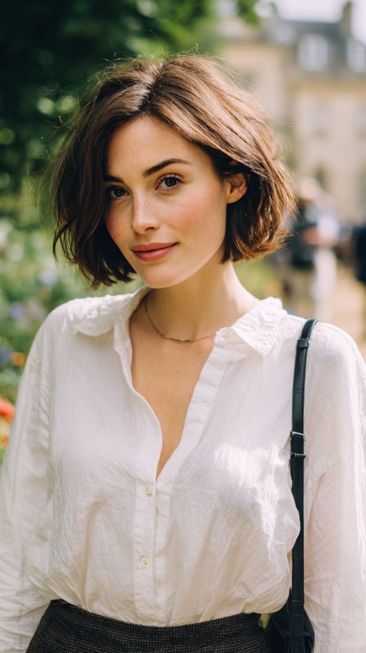This French-inspired bob captures that effortless, expensive charm that always feels natural and confident. The length usually falls around jaw or chin, with slight texture at the ends. It doesn’t look overly styled, which makes it even more appealing. This bob gives the impression of quiet luxury and timeless taste. It pairs beautifully with simple outfits and natural makeup. The style grows out gracefully, keeping its shape for long time. With minimal effort, it always looks chic and elegant. This is the kind of haircut that makes you feel put together without even trying.