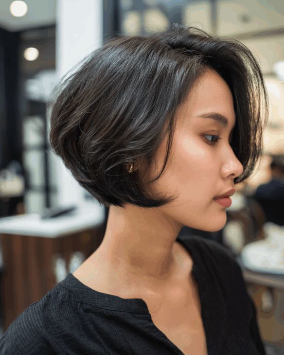 Image is required to show the controlled volume and smooth finish of this hairstyle. I prefer neat low volume bob when I want understated elegance for party look. The soft shape keeps everything minimal and refined. Additionally, it pairs perfectly with pearl accessories. This hairstyle highlights natural features beautifully. It feels classy and sophisticated for formal settings.