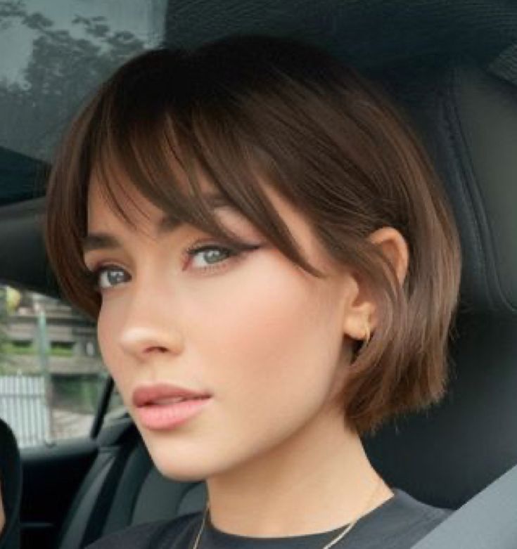 This one feels romantic yet incredibly refined. I keep bob slightly rounded at edges and add airy bangs that float across forehead rather than sitting heavy. The fringe blends softly into sides, creating effortless frame. Styling stays natural—blow-dry smooth, tiny curve at ends, finish with light serum. It feels like hair that always looks perfect without obvious work. I love wearing this with crisp shirts and natural makeup for full effect. It gives heritage elegance mixed with modern simplicity. For anyone craving timeless haircut with soft personality, this version nails old-money aesthetic beautifully.