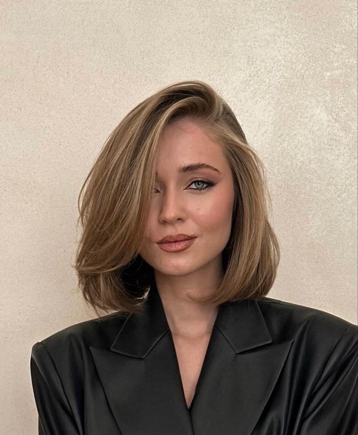 When I want something feminine yet structured, I style my medium bob with a soft side part. It adds subtle volume and creates a flattering shape around my face. I keep the texture smooth from root to tip for a refined finish. This style pairs beautifully with off-shoulder outfits or minimal jewelry. It gives a romantic feel without looking trendy. I love how effortless it appears while still feeling elegant. For weddings or dinner parties, this side-part medium Old Money bob always helps me feel polished and well put together.