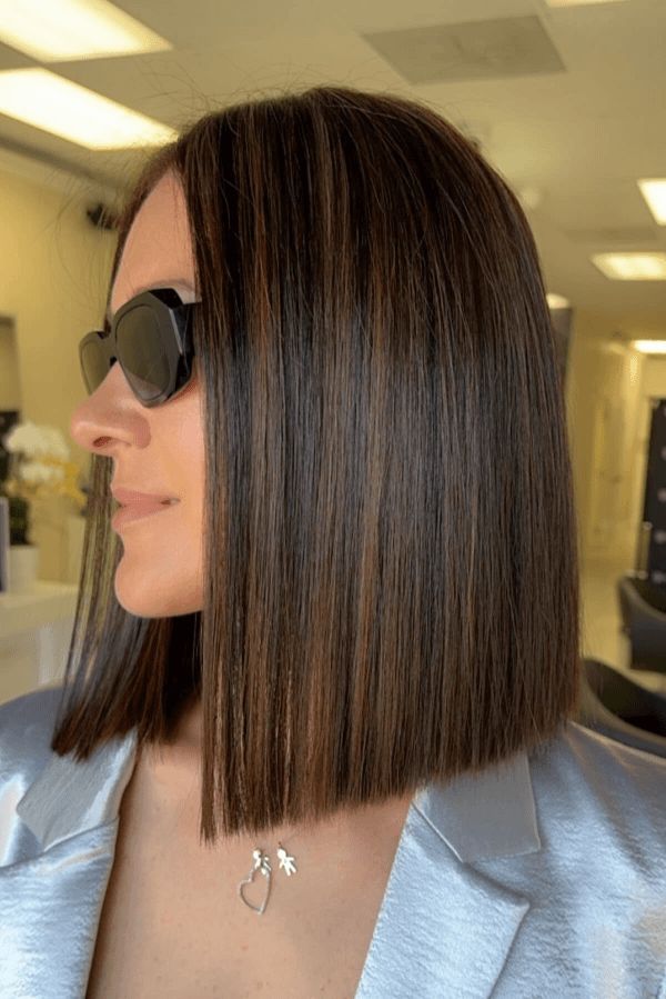 This version sits right at jawline and focuses entirely on sharp, tailored lines. I keep color deep and glossy so shape stands out clearly. Styling stays sleek with flat iron and smoothing cream. No waves, no fluff—just perfect outline. I love how this haircut makes even simple outfits look expensive instantly. It feels bold but still very controlled and classic. Perfect for people who love minimalism and strong silhouettes, this style proves that brunette bobs can be powerful, timeless, and endlessly chic without extra effort.