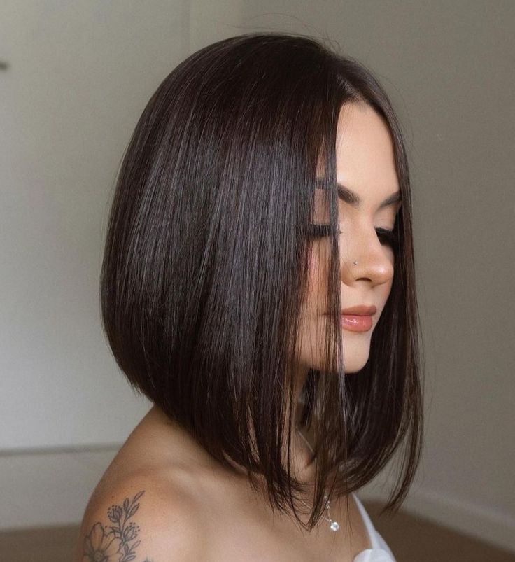 A subtle graduation at back adds structure without turning haircut into trend piece. I keep front pieces slightly longer so face stays softly framed. The brunette tone makes angles look refined and expensive, especially when styled smooth. Blow-drying with round brush highlights shape perfectly. This version is great for people who like definition but not dramatic layers. It feels professional, elegant, and very wearable day after day. I love how it keeps neckline neat while maintaining calm, old-money vibe that never looks forced or loud.