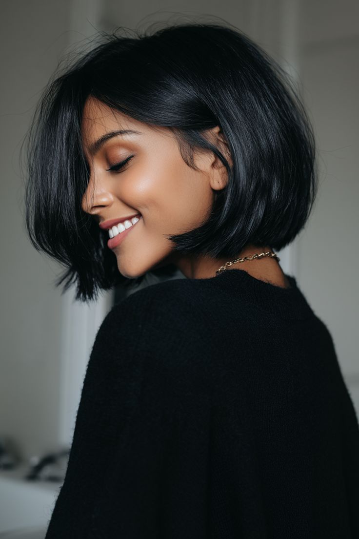 This style feels classic and incredibly neat. I shape the bob so it curves inward gently at the ends, hugging my jawline softly. The brunette color adds depth and shine, enhancing the smooth silhouette. I usually style it with a round brush and light serum for polish. What I love most is how refined it looks from every angle. It’s effortless, flattering, and timeless without needing dramatic volume.