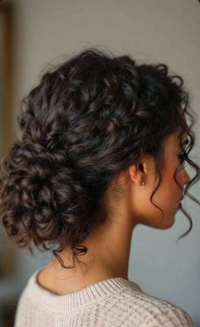 A low curly chignon is my go-to when someone wants elegance without stiffness. I’ve styled this on models wearing very detailed dresses, and honestly, it lets the outfit shine while still looking polished. I’ve found curls add softness that straight chignons just don’t have.